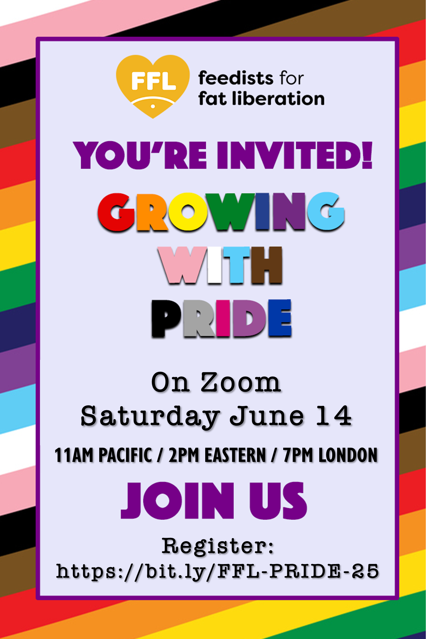 On Saturday June 14 11AM Pacific / 2PM Eastern / 7PM London please join FFL for an inclusive gathering where we celebrate our identities and our stories. Growing with Pride is more than just an event; it’s a space where LGBTQIA2S++ feedists can come together to connect and share. There will be exploration and discussion